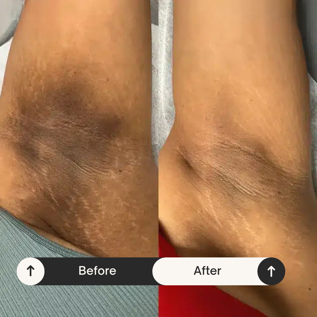 You can start wearing sleeveless tops and dresses with confidence! Dark spots begin to fade, and your skin feels smoother and more even-toned. Little by little, the glow shows!
