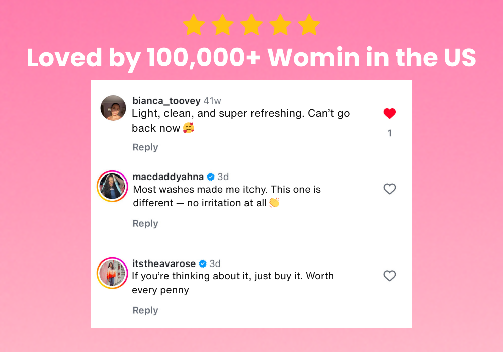 “Super gentle, no irritation at all. I love that it doesn’t have a strong smell but still makes me feel really clean.”